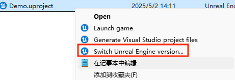首先看看有没有.sln文件,如果没有的话,右键*.uproject,选择Switch Unreal Engine version