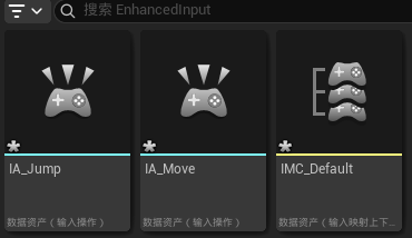 横板2D游戏的移动比较简单,最基础的就是左右移动和跳跃,所以就先从这两个最基础的Action开始,首先从InputMappingContext和InputAction创建IMC_Default、IA_Move和IA_Jump