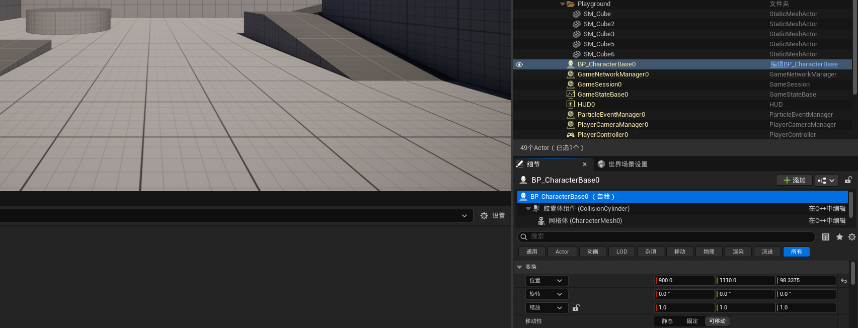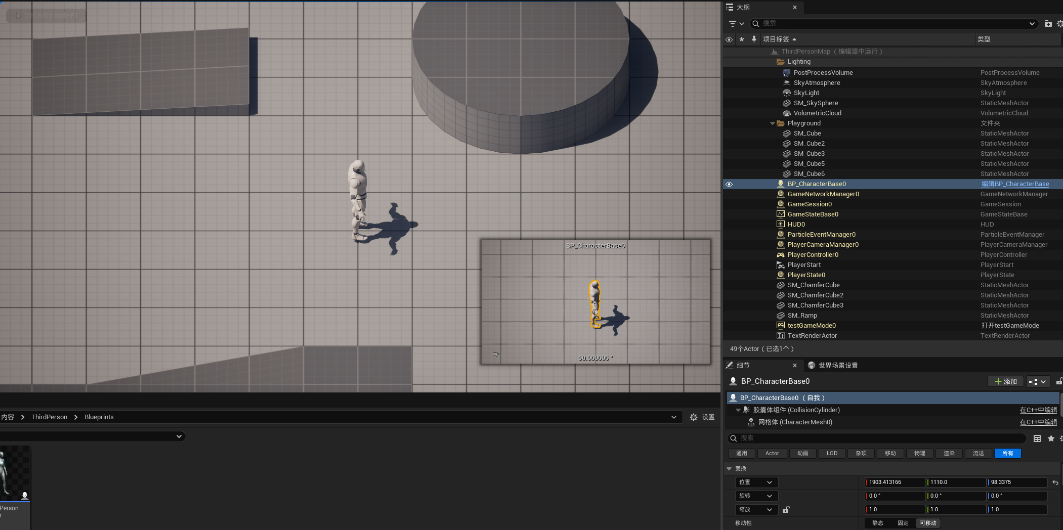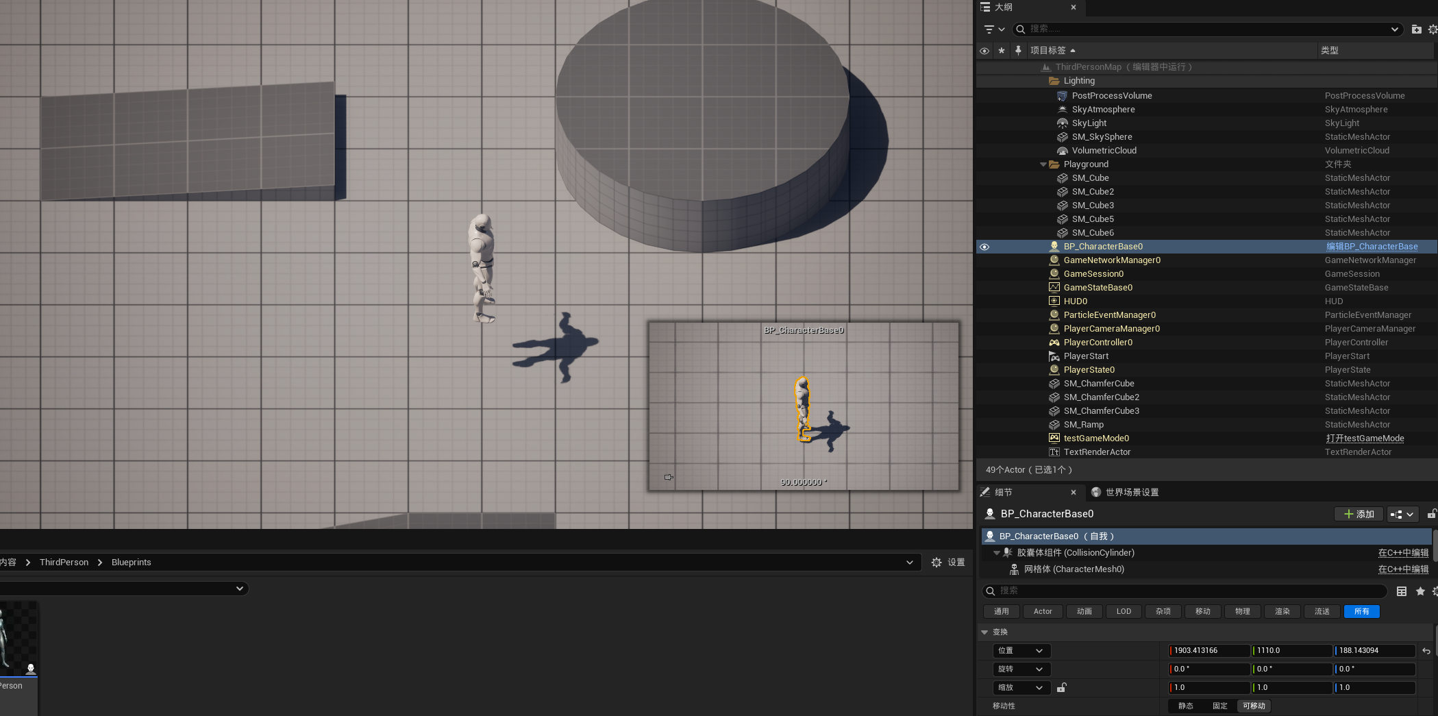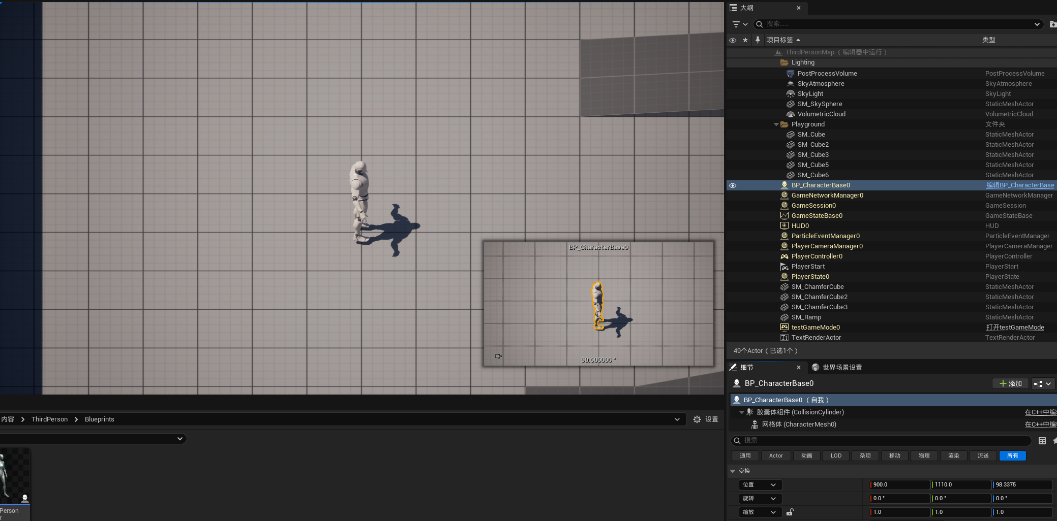 然后在GameMode中指定BP_CharacterBase为默认的Pawn