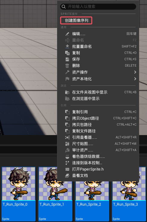 既然可以利用PaperZD来设置动画状态机,那么接下来只需要准备动画素材即可,UE5中的2D动画被称为FlipBook,选择需要的Sprite序列,然后右键创建图像序列,最后在FlipBook中调节每秒帧数即可