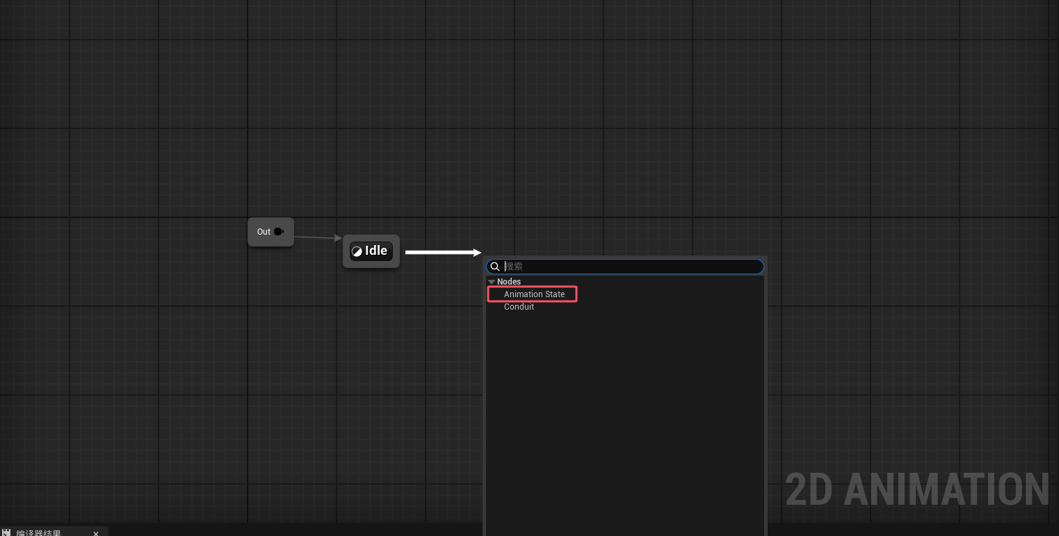 与UE5提供的3D动画蓝图类似,我们从引脚创建一个新的状态机,然后双击进入状态机内部