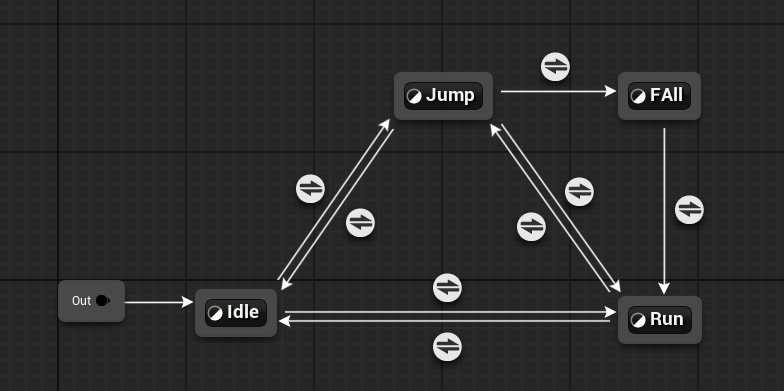 接下来就是创建状态机的状态和状态转移的条件,目前我们只有三个状态,Idle、Run和Jump,所以依次创建它们即可