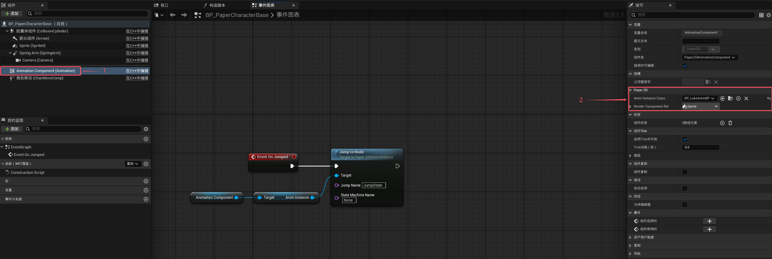 Jumped事件,我们通过蓝图组件获取Anim
